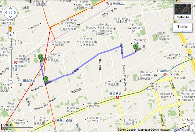 i take out my headphones ready to say "Dui bu qi, wo bu dong Zhongwen" or ("I'm sorry, I do not understand Chinese") but then they started talking to me and get this, I understood! i really understood somehow. He said something to the extent of "Where is Ruijin Rd?" I stood there for about 5 seconds trying to process his request and then it happened... i said "You guai shanxi. Zou guai shaoxing." or ("Right on Shanxi and Left on Shaoxing")... but as I was ever so proudly speaking with them a chinese woman came in and stole my glory! HELLO! I had the situation handled!